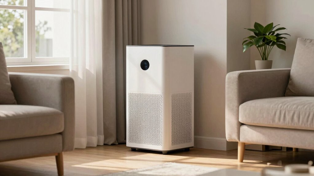 Properly placing your air purifier is like giving it room to breathe—without it, its cleaning power is limited. Avoid the corner mistake, position it in a central spot, and guarantee unobstructed airflow. By doing so, you’ll maximize its effectiveness and breathe easier. Think of your air purifier as a diligent gardener—when placed right, it can truly flourish, transforming your space into a healthier, fresher sanctuary.