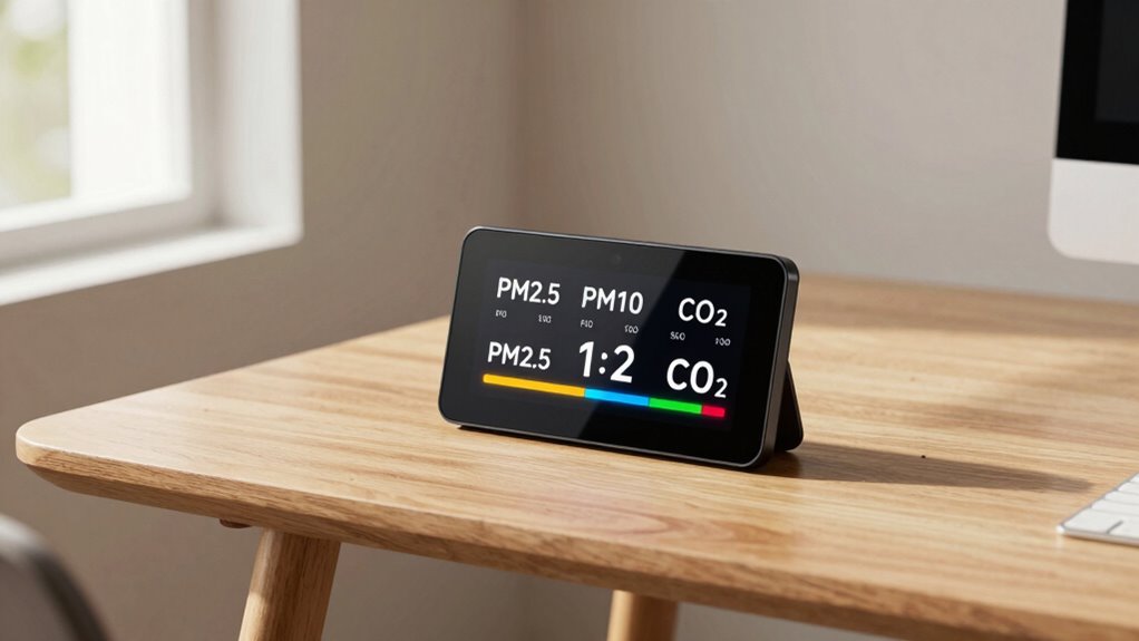 When choosing an air quality monitor, focus on the numbers that truly matter—like PM2.5 and AQI—to get an accurate picture of your home’s air. Did you know that even a slight increase in PM2.5 levels can double your risk of respiratory issues? By understanding these key statistics, you can better protect yourself and your loved ones. Remember, the right monitor helps you breathe easier and stay healthier every day.
