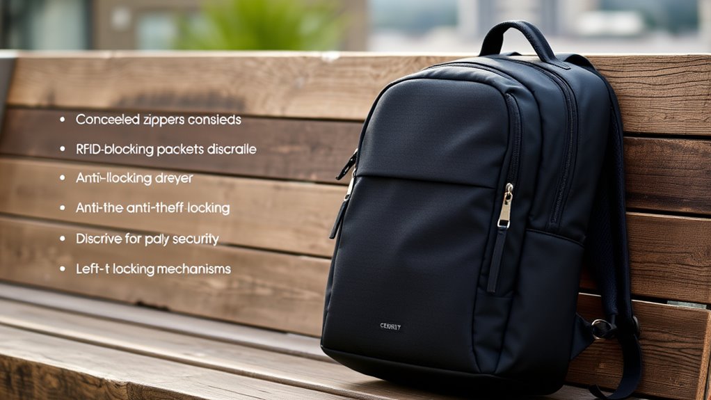 If you’re looking for the best anti-theft travel backpacks that keep your gear safe and stylish, I’ve got you covered. These backpacks feature strong security measures like RFID-blocking pockets, lockable zippers, slash-resistant fabrics, and discreet compartments—perfect for urban travel or outdoor adventures. They’re made from durable, water-resistant materials and come in versatile styles that fit everything from laptops to essentials. Keep going to discover top options that blend safety, comfort, and style seamlessly.