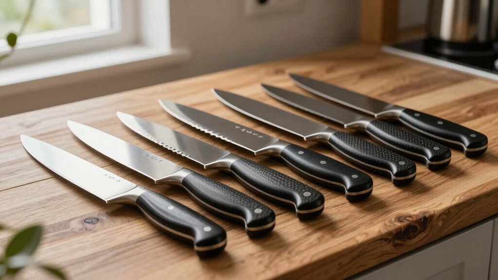 Choosing the right carbon steel knife set feels like finding a trusty Excalibur in your culinary arsenal. With options like HOSHANHO and SHAN ZU leading the charge, you can’t go wrong. Remember, durability and sharpness are key—think of it as wielding a sword in your own medieval kitchen. So, pick your set wisely, sharpen your skills, and cook like a true knight—no dragons required.