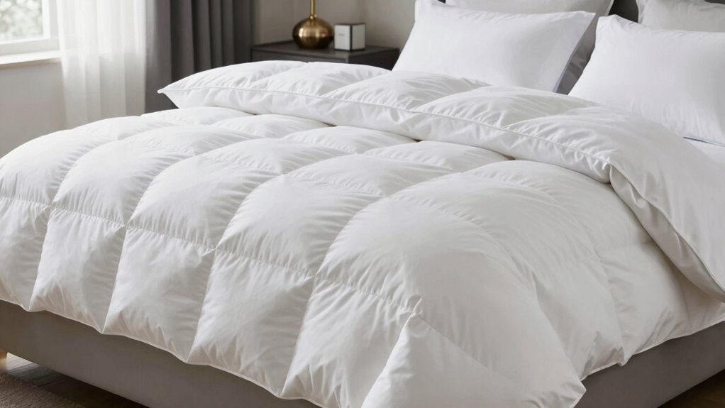 Understanding fill power and weight is essential because they directly influence how warm, lightweight, and breathable a down alternative duvet insert will be. Fill power measures the loft or fluffiness, with higher fill power providing better insulation and a more voluminous look. This means a higher fill power offers warmth without adding bulk, making it ideal for those who want a cozy yet lightweight feel. The weight of the duvet, usually expressed in pounds or grams, impacts its warmth level and suitability for different seasons. Balancing fill power and weight helps you find a duvet that offers the right insulation and breathability, ensuring a comfortable night’s sleep. Paying attention to these factors ensures you select a duvet that meets your climate needs and personal preferences.