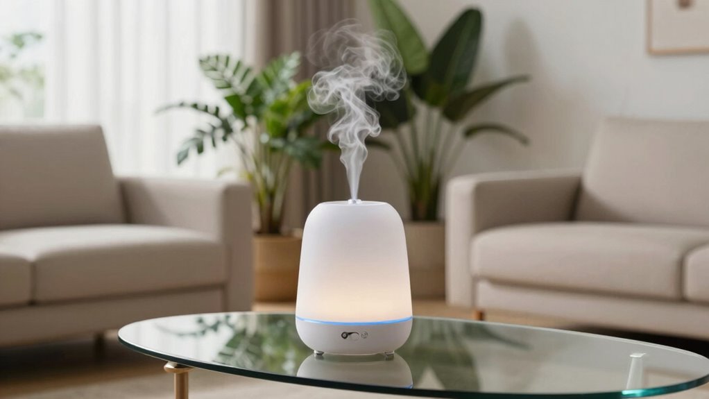 Imagine a gentle breeze sweeping through an open room—that’s how essential oil diffusers can improve air quality. I’ve seen their calming scents reduce airborne toxins and allergens, making the space feel fresher. While they aren’t a substitute for ventilation, they can boost overall air quality and create a more inviting atmosphere. If used correctly, they’re a natural way to enhance your home’s ambiance and air purity.