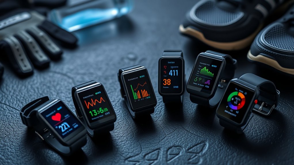 Looking to boost your performance, I recommend exploring the top fitness trackers for athletes in 2025. These devices offer advanced health metrics like heart rate, VO2 max, sleep, and recovery, along with support for over 16 sports modes. They’re durable, stylish, and seamlessly sync with your phone for real-time insights. Whether you’re into running, swimming, or team sports, these options can help refine your training. Keep going, and you’ll uncover the best picks to elevate your game.