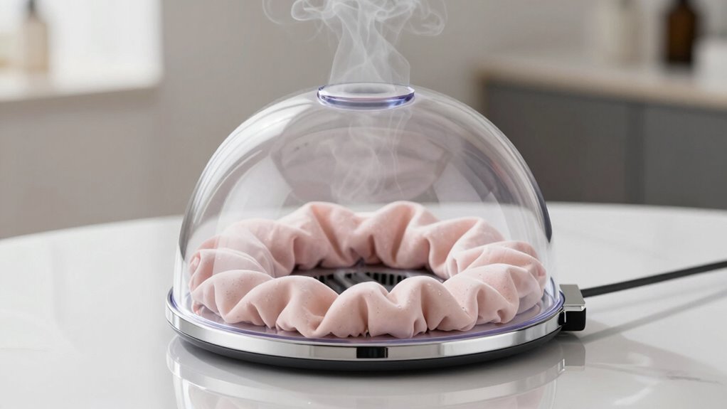 Like a trusty guardian angel, some models do include automatic shut-off features, giving you peace of mind during treatments. I’ve found that several top-rated steamers have this safety feature, preventing overheating and conserving energy. It’s a smart addition that guarantees you won’t forget to turn it off, much like a vigilant sentinel watching over your hair care routine. So, yes, many models now prioritize safety with automatic shut-off options.