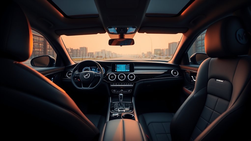 The visual appeal of high-end car audio systems plays a crucial role in enhancing your vehicle’s interior. Sleek, modern designs with customizable LED lighting and large HD touchscreens not only boost aesthetics but also improve functionality. High-quality materials guarantee durability and maintain their look over time, even with daily use. Seamless integration with your interior theme is essential, so look for systems with smooth mounting options and color-matched controls that blend effortlessly. Advanced display features, like customizable interfaces, add a sophisticated touch while providing easy access to controls. The overall design emphasizes user-friendly controls and a clutter-free environment, creating a high-tech cockpit that elevates your driving experience and complements your vehicle’s style seamlessly.