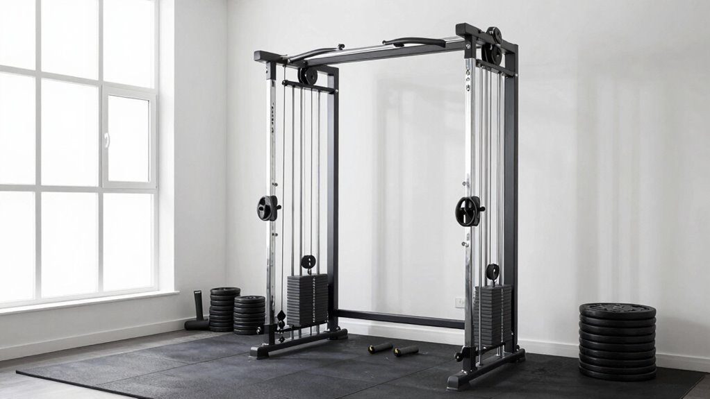 Think of pulley systems as dance partners; they need to move in harmony with your gym setup. Compatibility varies based on ceiling height, frame strength, and space. I always measure carefully, ensuring the pulley’s attachment points align with my equipment’s structure. When everything clicks, it’s like a symphony—smooth, seamless, and effortless. Adjustments might be needed, but with the right fit, your workouts flow like a well-rehearsed routine.