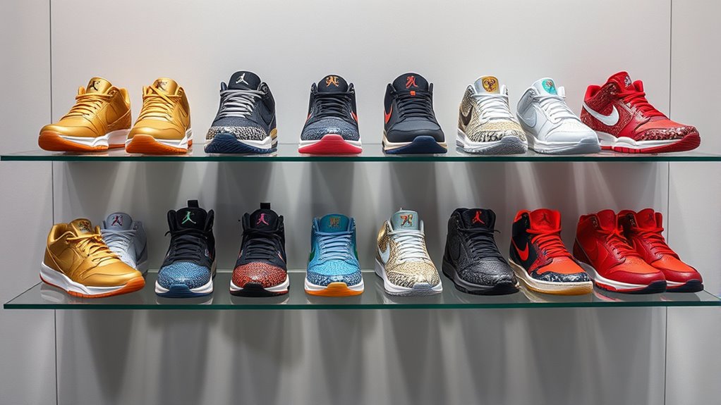 If you want to elevate your sneaker game, check out some of the best limited-edition athletic shoes like the Nike Air Jordan 1 Mid SE with its exclusive brushstroke canvas design, the classic Nike Air Jordan 1 Low, and retro-inspired Avia 821 High Tops. Unique textures, high-quality materials, and cultural motifs make these kicks stand out. Keep exploring, and you’ll discover even more ways to score the most exclusive styles.