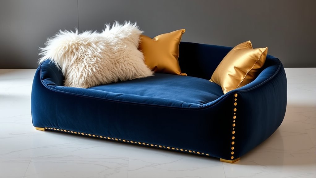 Think of a luxury dog bed as the jewelry of your home—its design should sparkle with elegance. I look for sleek lines, neutral tones, and minimalist details that blend seamlessly with modern decor. Features like subtle metallic accents or textured fabrics enhance the aesthetic without overpowering. These design elements act like a stylish accessory, elevating your space while keeping your furry friend cozy and fashionable.