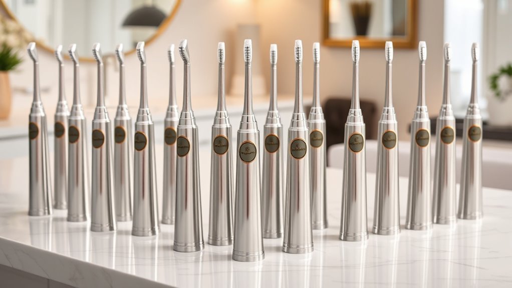 If you’re searching for the 15 best luxury water flossers that blend sleek design with powerful cleaning, I’ve got you covered. These models feature elegant finishes, portable sizes, and advanced pulsed water technology, making oral care both effective and stylish. They offer customizable pressure, multiple tips, long-lasting batteries, and waterproof designs suitable for travel and everyday use. Stay with me if you want to discover more about these top-rated, luxurious options that elevate your dental routine.