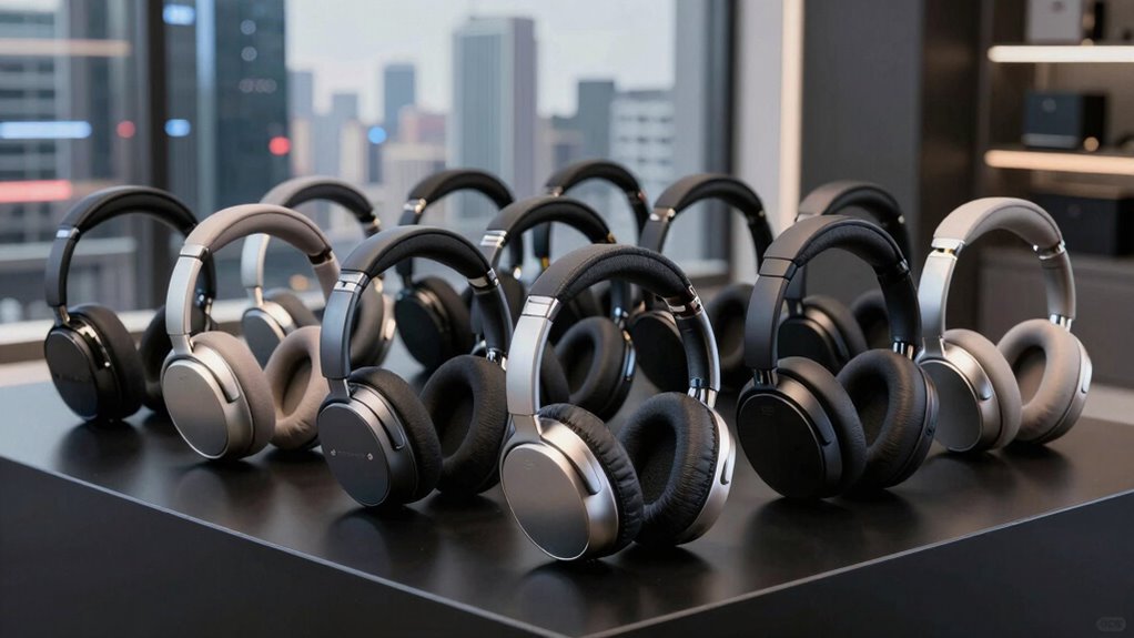 Comfort and fit are essential factors when selecting premium noise-canceling headphones, especially for long listening sessions. I look for designs that distribute pressure evenly, preventing fatigue, particularly with over-ear styles. Adjustable headbands and memory foam ear cushions are game changers—they let me customize the fit to my head shape and size for all-day comfort. I also prefer lightweight headphones, ideally under 10 ounces, to avoid neck strain. Breathable, pressure-free ear cups are a must—they help prevent overheating and discomfort during extended use. Ensuring the ear cups are the right size and shape is key to a secure fit that doesn’t compromise noise cancellation. When these elements come together, I can enjoy immersive sound without sacrificing comfort.