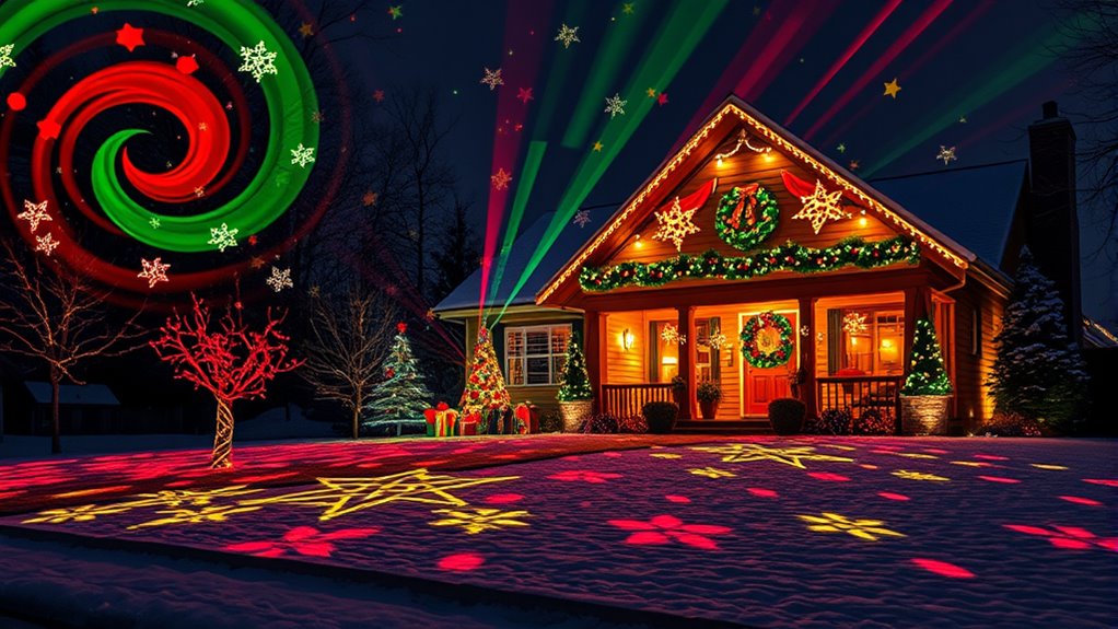 I’ve found the 15 best outdoor Christmas light projectors that make holiday decorating simple and stunning. These options feature vibrant RGB laser effects, weatherproof durability, and easy remote control setups. From dynamic snowflakes to moving firefly effects, they cover large outdoor areas and withstand harsh weather. Whether you want colorful stars or festive holiday scenes, these projectors deliver bright, customizable displays. Keep going, and I’ll help you find the perfect one for your festive needs.