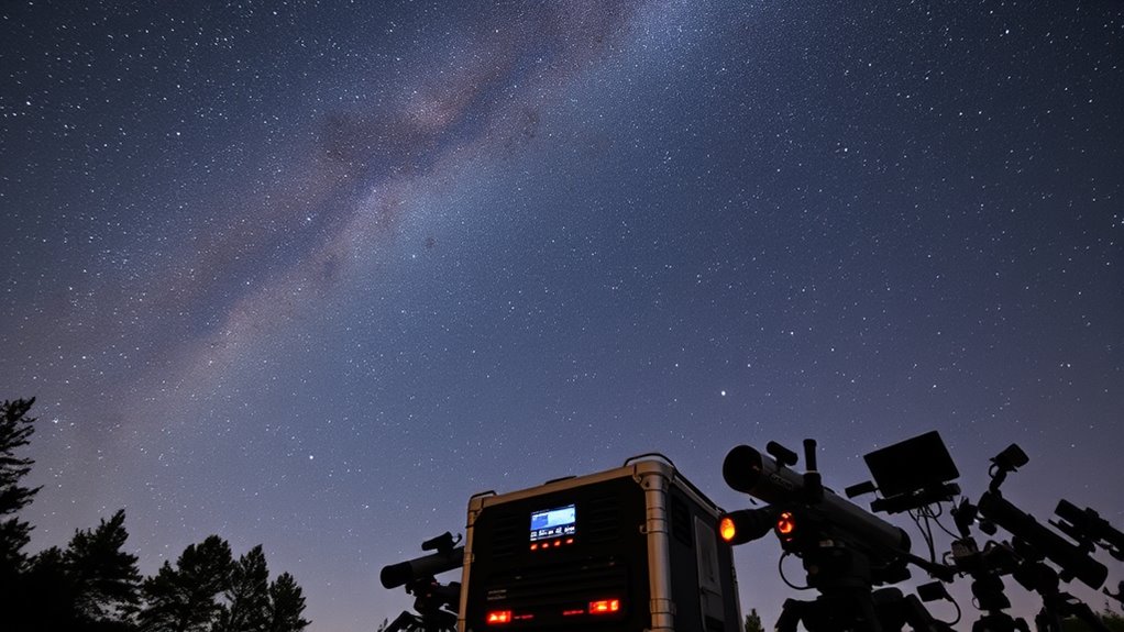 Ever notice how a sudden gust of wind can clear the sky just when you’re about to spot that elusive constellation? That’s the same kind of reliability I trust in these power stations—they’re safe around sensitive astronomical equipment. I always choose models with proper shielding and low noise levels, so I can enjoy my stargazing without worrying about interference or damage. It’s all about safe, peaceful nights under the stars.