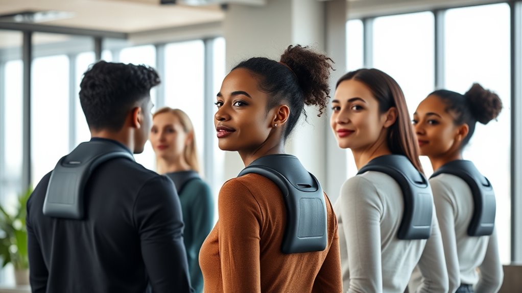 Integrating advanced technology into posture-correcting devices can substantially enhance their effectiveness by providing real-time feedback and personalized support. Sensors track angles, tension, or movement, alerting you instantly when your posture slips. Many devices connect wirelessly to smartphone apps, allowing you to monitor progress, analyze data, and customize settings. Vibration alerts act as immediate reminders, prompting correct posture during daily activities. Some devices even incorporate adjustable sensitivity, correction angles, or delay functions so you can tailor the experience to your needs. The integration of AI and machine learning further refines feedback by evaluating your habits and adapting guidance over time. This seamless technology integration ensures your posture correction is precise, responsive, and personalized, making it easier to develop healthier habits effortlessly.
