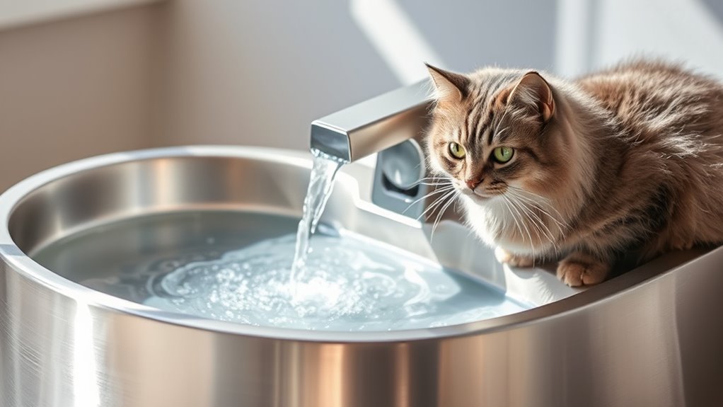 Choosing the perfect premium cat fountain is like planting a thriving garden—you nurture hydration and happiness with mindful choices. With so many excellent options, you’re giving your feline friend a steady stream of fresh water, turning their daily routine into a revitalizing adventure. Think of it as watering their wellbeing; every sip fuels their vitality. Invest in the right fountain, and watch your kitty flourish, basking in the clear flow of love and health you provide.