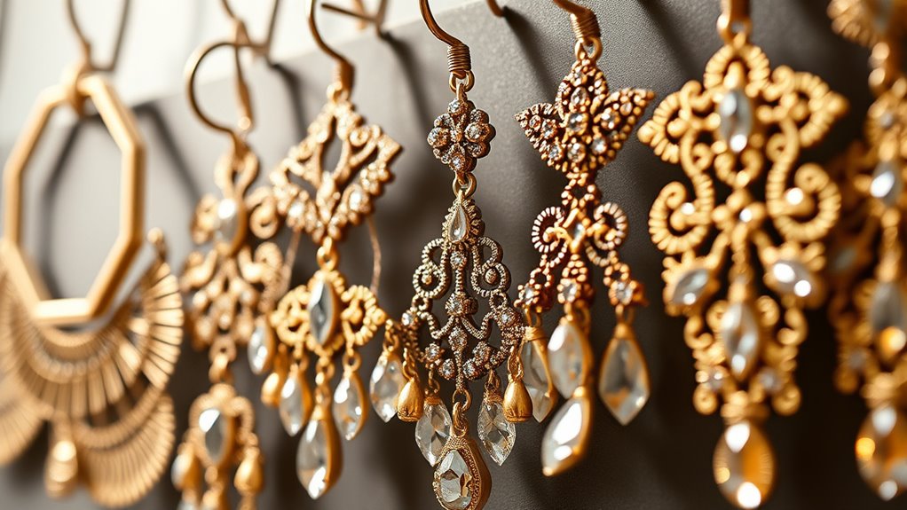 Imagine wearing a burst of color or a splash of geometric art—that’s what the latest premium statement earrings bring. This season, I see bold, oversized hoops, intricate chandelier designs, and mixed-metal masterpieces taking center stage. They’re like wearable sculptures, turning heads and sparking conversations. Whether you prefer edgy or elegant, these trends let you express your style boldly, making every outfit a runway moment.
