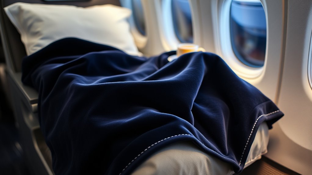Since long flights demand multiple forms of comfort, a versatile travel blanket becomes an essential companion. I look for blankets that can serve as a blanket, pillow, or cushion, maximizing utility during the trip. Multi-use designs that fold easily and transform between different forms help me adapt to changing comfort needs. Features like built-in pockets, snaps, or straps allow the blanket to be worn as a hoodie, headrest, or lumbar support, adding convenience. I also prefer materials that stay soft and maintain their shape even after multiple washes, ensuring durability. Additionally, attachment options like luggage straps or clips make it easy to secure the blanket to my bag or carry it hands-free. Versatility truly enhances the overall travel experience, making long flights more comfortable and convenient.