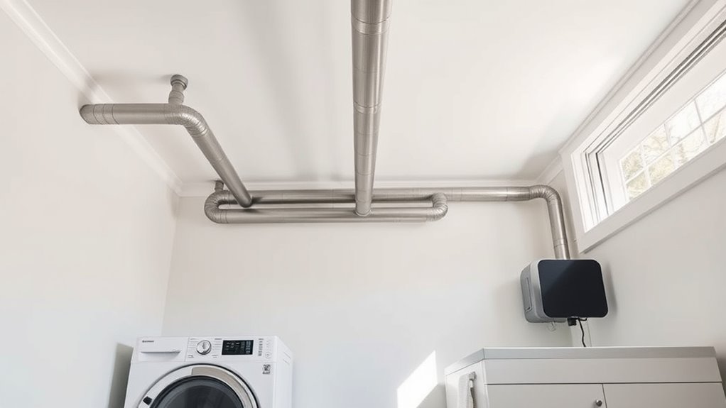 The size and placement of a central vacuum system play crucial roles in ensuring it operates quietly while effectively cleaning your home. Smaller units tend to produce less noise because of their reduced motor and component size. Placement is equally important; installing the vacuum in a basement, garage, or closet can considerably cut down noise exposure in living areas. Positioning the system near bedrooms or common spaces, combined with soundproofing materials or mufflers, helps minimize sound transmission. Additionally, placing the unit within an insulated or acoustically dampened enclosure further enhances noise reduction. It’s essential to take into account your home’s layout, ensuring enough inlet locations for efficient cleaning without sacrificing quiet operation. Thoughtful size and placement choices make a big difference in overall comfort and performance.