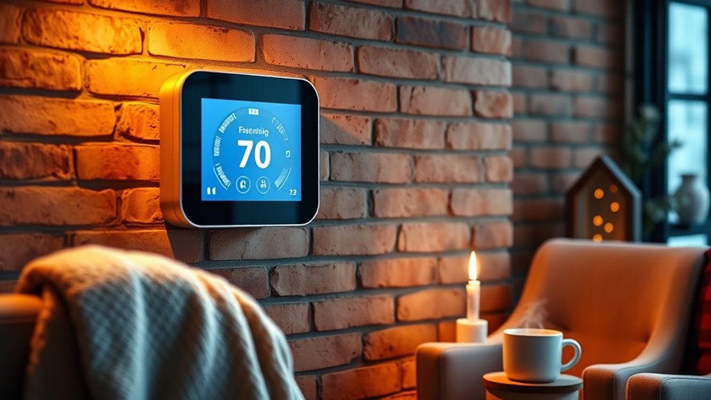 Control and programming options play a significant role in how effectively a smart thermostat manages your heat-only system. I look for models that let me set schedules, so I can customize temperatures for different times of day and days of the week, ensuring comfort without waste. Remote control via smartphone apps is a must, allowing me to adjust the thermostat from anywhere. Voice control compatibility with Alexa or Google Assistant adds convenience, giving me hands-free operation. Some thermostats even learn my preferences over time, optimizing comfort and saving energy automatically. Advanced features like geofencing are also valuable, as they can detect when I leave or return home, adjusting heating accordingly. These options help me stay cozy while maximizing efficiency.