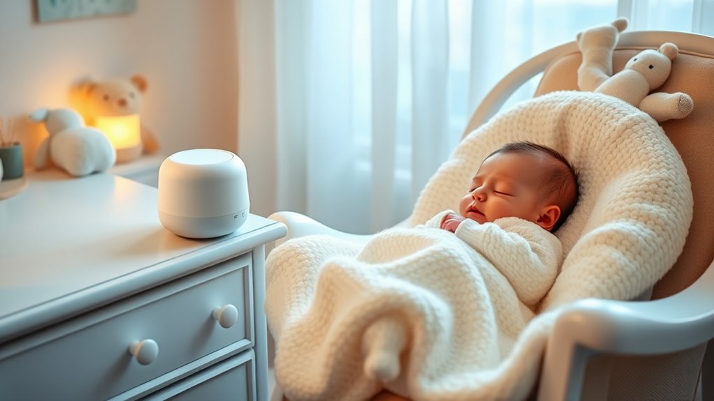 Finding the right white noise machine is like discovering a lullaby that instantly soothes your little one. I remember when my baby finally settled after trying several options—it was like turning on a gentle, calming stream in a noisy forest. Choosing the perfect machine can transform bedtime from chaos to calm, giving both you and your baby peaceful nights ahead. Trust your instincts, and you’ll find that perfect soundscape for restful sleep.