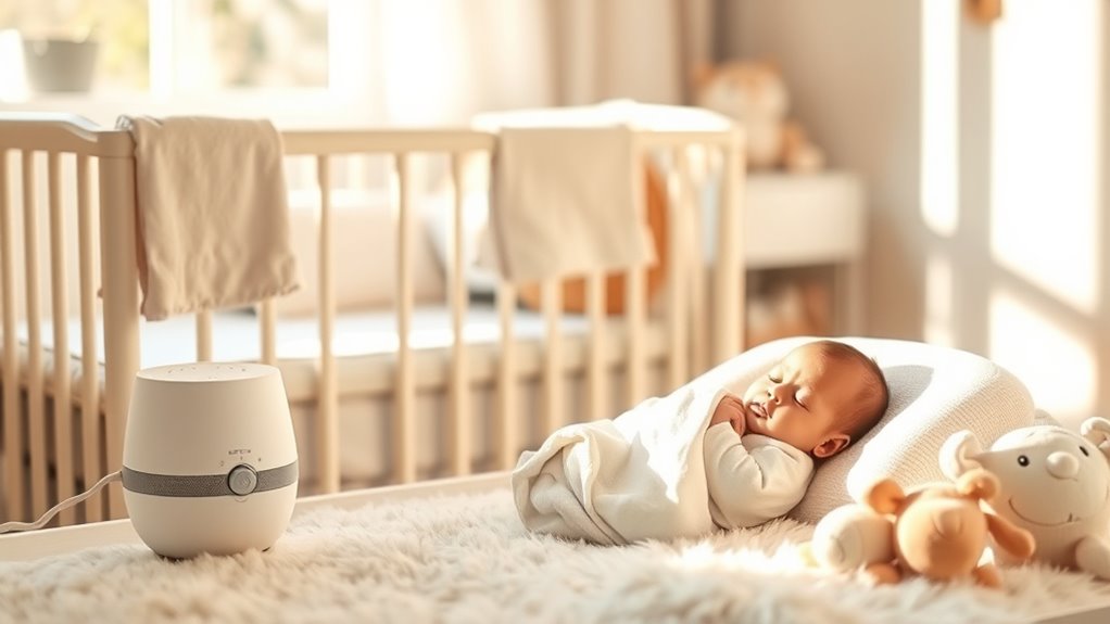 Choosing the right white noise machine is like finding a gentle lullaby amid a busy world—calming yet powerful enough to mask life’s chaos. With the perfect device, you’ll create a peaceful haven where your newborn drifts into restful sleep, undisturbed by outside noise. It’s a small investment that transforms nursery chaos into a tranquil sanctuary, allowing both your baby and you to enjoy serene nights—peaceful moments amid the noise of everyday life.