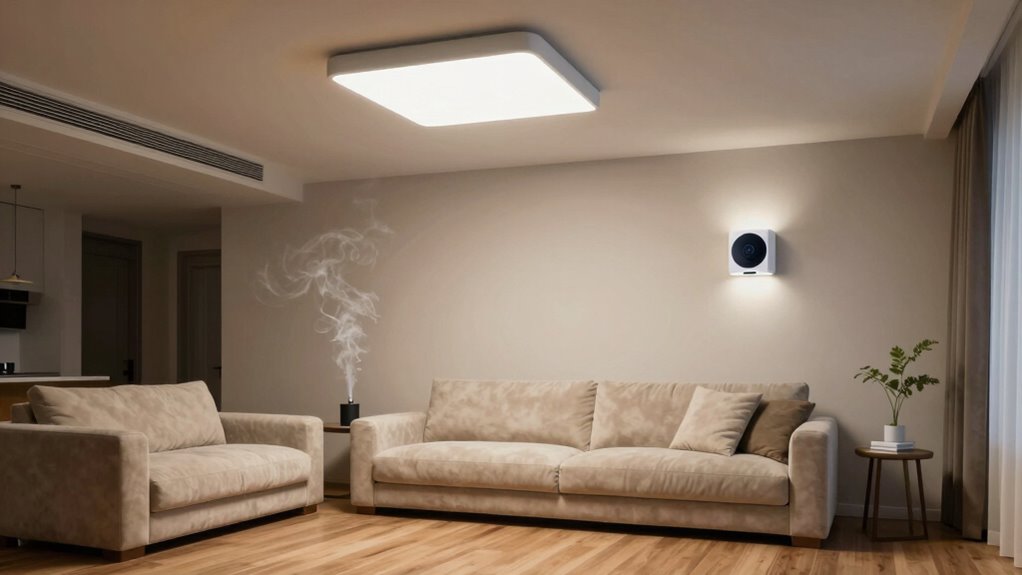 Maintaining large-area scent diffuser systems is straightforward. I regularly check and refill the scent cartridges or essential oil reservoirs to keep the aroma consistent. I also clean the diffusers’ nozzles and filters weekly to prevent clogs and guarantee peak performance. Additionally, I monitor the system’s filters and replace them as recommended by the manufacturer. Consistent maintenance keeps my diffuser working efficiently and fills my home with delightful scents.