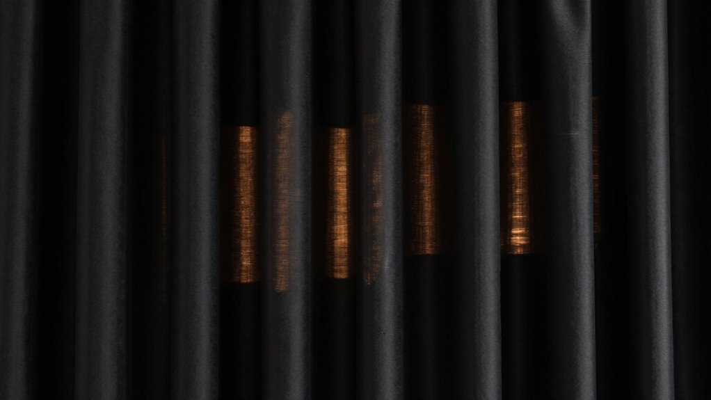 Light leaks from gaps around your blackout curtains or window frames can let in outside light and disturb your sleep. To fix this, check for cracks or openings and seal them with weatherstripping, felt strips, or adhesive strips. Use thick, full-length curtains with proper installation techniques to block light effectively. Regular maintenance like cleaning and tightening hardware guarantees your room stays dark. Keep going to discover more ways to eliminate every light intrusion and enjoy restful sleep.