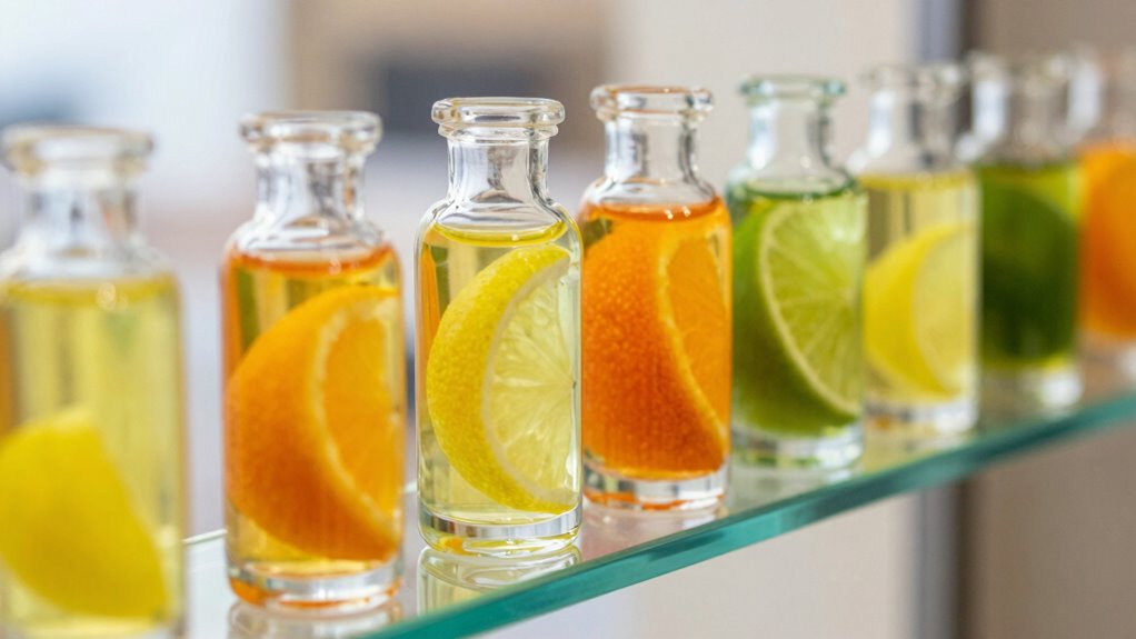 Refrigeration can help extend the shelf life of citrus oils by slowing down oxidation effects, which cause them to degrade faster. Proper storage techniques, like keeping the oils in airtight, dark glass bottles and away from heat, also prevent premature spoilage. While refrigeration isn’t always necessary, it’s especially beneficial if you want to preserve their freshness longer, reducing the risk of oxidation and maintaining their vibrant aroma and properties.