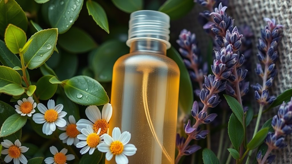 A gentle cleansing oil with botanicals effectively removes makeup and dirt while soothing your skin. It mimics your skin’s natural oils to lift impurities without stripping moisture. Botanical extracts like chamomile, calendula, and green tea provide calming, antioxidant, and anti-inflammatory benefits, supporting your skin’s health. It’s suitable for all skin types and leaves your skin soft, balanced, and refreshed. Keep exploring to discover how these natural ingredients can enhance your skincare routine even further.