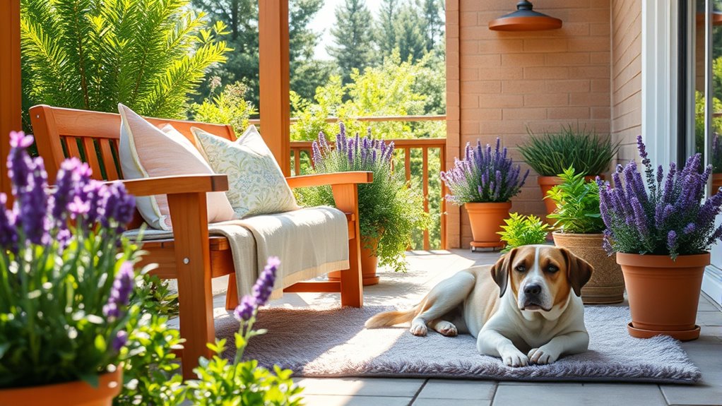 Now, when it comes to enjoying your outdoor space, especially if you love to spend time with pets, scent plays a significant role. Pet-safe patio scents are essential because many fragrant plants or commercial air fresheners can be harmful to animals. Instead of using harsh chemical sprays or potent candles, opt for natural options that are safe for pets. For example, certain herbs like lavender or rosemary not only smell lovely but are also safe for animals. You can incorporate these into your garden or use pet-friendly essential oils in diffusers. Just verify any scents you choose are specifically labeled pet-safe to prevent accidental poisoning or irritation.