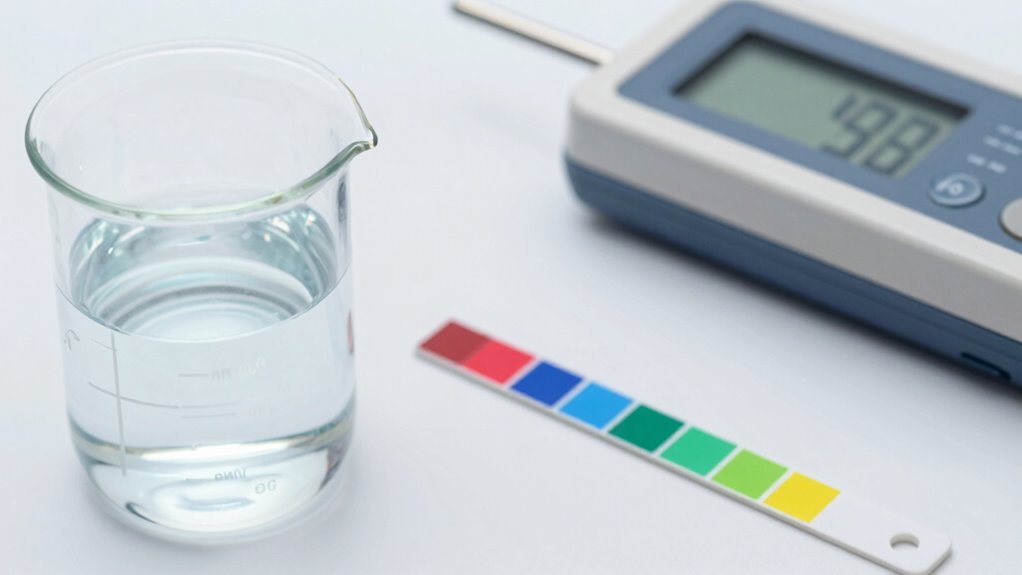 Professional skin pH testing involves precise methods that guarantee accurate results, whether performed in a clinic or at home. In clinics, professionals use specialized tools like calibrated pH meters, which require careful pH meter calibration to ensure accuracy. These devices provide direct, reliable readings of your skin’s pH level. Alternatively, some clinics may send samples to a professional lab analysis, offering detailed insights into your skin’s acidity or alkalinity. At home, testing kits with pH indicator strips are available, but they’re less precise than professional methods. Whether in a clinic or at home, proper calibration and adherence to testing protocols are essential to obtain trustworthy results. Professional testing procedures deliver the most accurate understanding of your skin’s pH, guiding effective skincare choices. Additionally, understanding proper ventilation considerations can help maintain a healthy environment during testing procedures. Ensuring proper test sample collection techniques is also crucial for reliable results and to prevent contamination.