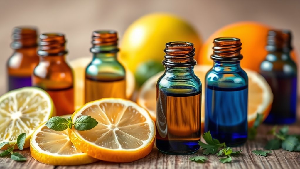 Phototoxic essential oils contain compounds, like furocoumarins in citrus oils, that can increase your skin’s sensitivity to sunlight, leading to redness or burns. To stay safe, avoid applying these oils before sun exposure and wait at least 12 to 24 hours afterward. Always dilute oils properly with carrier oils and perform patch tests. Using protective clothing and sunscreen adds extra protection. Keep learning to understand which oils are safe and how to prevent skin reactions.