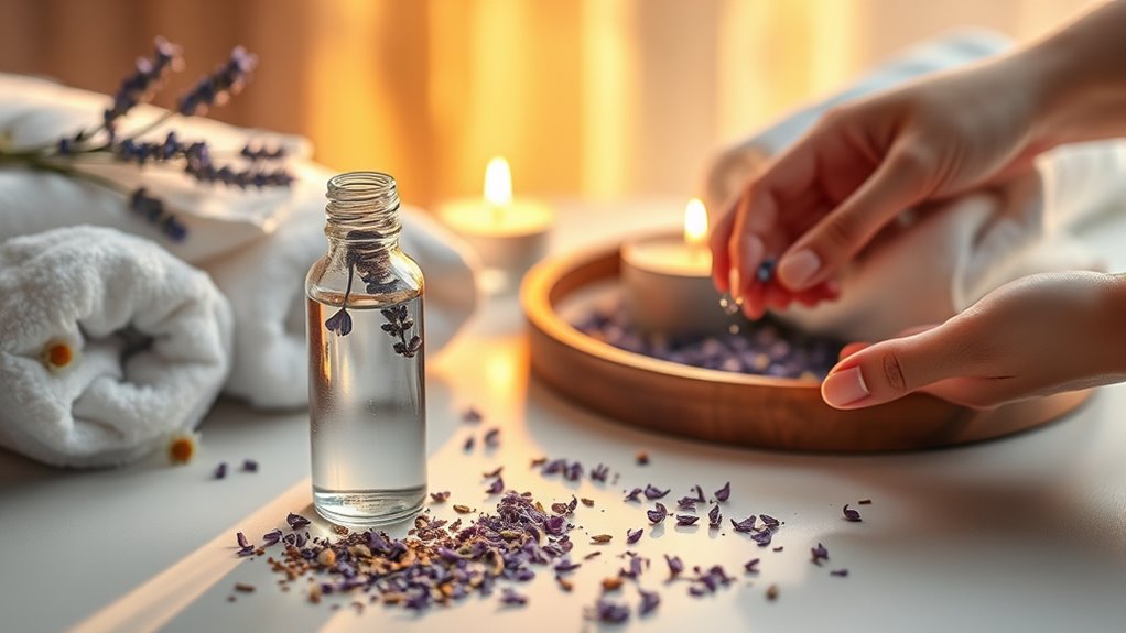 Imagine walking into a garden where each scent whispers your intention. To choose the right scent, focus on your clarity of intention first—are you seeking calm, motivation, or joy? Then, select scents that align with those feelings, like lavender for relaxation or citrus for energy. Trust your intuition and note how each aroma makes you feel, ensuring your scent selection truly supports your goals.