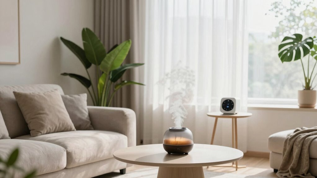 Long-term VOC exposure can lead to serious health risks, including respiratory issues, headaches, and even damage to your liver or kidneys. Indoor pollutant sources like paints, cleaning supplies, and furniture emit these VOCs, which can accumulate over time. By minimizing these sources and ensuring good ventilation, you reduce VOC health risks, creating a safer, wellness-focused home environment where you can breathe easier and stay healthier for the long haul.